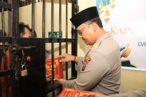 Kapolres juga menyampaikan pesan khusus kepada para tahanan agar menjadikan Bulan Suci Ramadhan sebagai momentum introspeksi dan perubahan diri ke arah yang lebih baik.