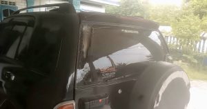 Kaca jendela rumah serta kaca mobil milik korban pecah akibat lemparan batu dari para pelaku.