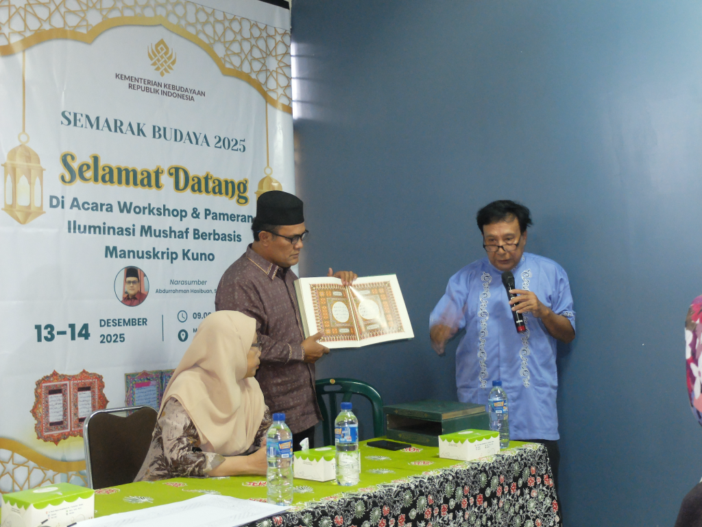 Deli Serdang | Intipos.com — Program Semarak Budaya 2025 kembali menghadirkan ruang perjumpaan antara sejarah, seni, dan spiritualitas melalui Workshop dan Pameran Iluminasi Mushaf Berbasis Manuskrip Kuno yang digelar pada 13–14 Desember 2025 di Museum Sejarah Al-Qur’an Sumatra Utara. Kegiatan ini didukung oleh Kementerian Kebudayaan Republik Indonesia, sebagai upaya melestarikan dan mengenalkan warisan budaya Islam Nusantara kepada publik luas. Jum’at (19/12/25)