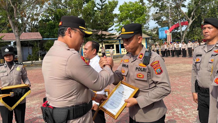 Langkat | Intipos.com - Kapolres Langkat AKBP David Triyo Prasojo, S.H., S.I.K., M.Si. memimpin Upacara Pemberian Reward kepada personel berprestasi...